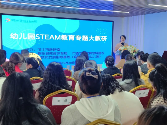 近日,全市幼儿园STEAM教育专题大教研活动在略阳县城关幼儿园举行。活动由市教研室主办,略阳县教体局、市直学前教育领域建设和教师发展指导基地园略阳县城关幼儿园承办。略阳县教体局相关部门负责人、各县区教研室学前教育专职教研员、幼儿园教师代表、市直学前教育领域建设和教师发展指导基地领军成员及所属幼儿园教师代表、略阳县城关幼儿园教育集团教师代表等90余人参加活动。