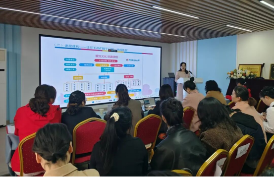 陕西师范大学学前教育学院副教授田方,以《STEAM教育中儿童的数学学习及支持性策略》为题,聚焦STEAM教育指的是什么、什么是深度学习、如何支持幼儿数学深度学习等四个方面,运用生动的案例和图说,进行了深入浅出的阐释。略阳县城关幼儿园园长马敏芳以《五维聚力 STEAM赋能——幼儿园特色育人实践的探索》为题,引用丰富案例,结合校园工作实际,向与会者分享了特色育人的经验做法。