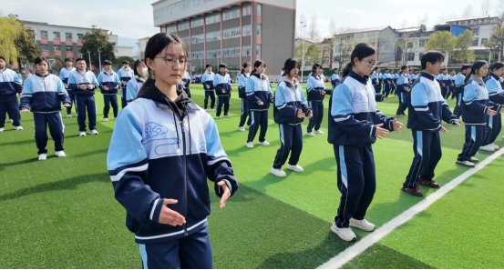 作为学校“阳光体育”大课间的特色项目,八段锦早已成为师生每日锻炼的“必修课”。学校以练促养、以体润心,依托这项柔和缓慢、松紧相济的传统健身功法,让师生在动静之间调节身心、舒缓疲劳、强健体魄。“我们现在的课间15分钟,不再是枯燥的等待,而是充满活力的运动时光,每天的锻炼让我们学习更有劲头,身体也更棒了。”彭同学说道。