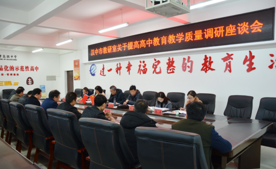 调研组一行参观了校园,聆听了学校党总支书记、校长刘金平对学校办学规模及生源概况、学校教育教学管理及质量提升、办学绩效和办学亮点、2021届高三复习备考策略、目标和措施等方面的汇报。调研组走进各年级教师办公室随机检查了教师备课、作业批改、教师听课等情况,并分别到三个年级进行推门听课,并与汉中市第一次教学质量检测考试的地理、历史命题教师展开了深入交谈。