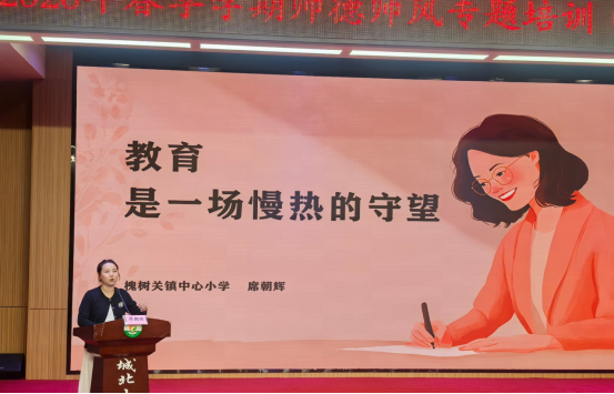 本次培训聚焦三大板块。一是“教育惩戒规则实操精讲及警示教育”。专家系统解读了教育惩戒的适用情形、具体措施与实施程序,深入辨析体罚、变相体罚与正当惩戒的界限,并结合近年来违反师德师风的典型案例剖析根源与危害,引导教师知敬畏、守底线。二是“教育智慧与经验分享”。围绕学生心理发展与沟通技巧、班级管理与问题学生引导、家校共育与正面管教等内容,专家分享了非暴力沟通、积极倾听、网络沉迷应对、厌学情绪疏导等实用方法,指导教师实现从“会管”到“管住”到“育人”的转变。三是“我的育人故事”。6名一线身边榜样以亲身经历讲述了一个个真实温暖的教育故事,用细微行动折射教育温度,激发了参训教师的职业荣誉感和内生动力。