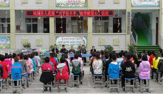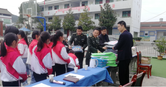 11月4日,城固县人武部到盐井中心学校举行“城固县人武部大手拉小手、助学献爱心”活动。县人武部政治委员李杰、保障科科长秦维恒等领导参加本次活动。