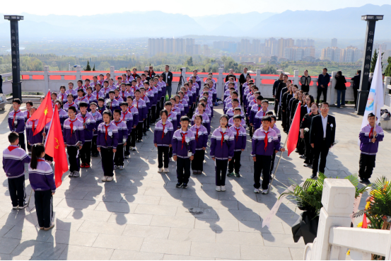 祭奠仪式庄重肃穆。党员教师向烈士敬献花篮,仔细整理缎带,寄托无尽哀思。全体师生向烈士三鞠躬、默哀1分钟,以最庄严的方式追思先烈功绩、传承先烈精神。少先队员重温入队誓词,铿锵誓言在陵园上空久久回荡。仪式在全体队员响亮的呼号声中接近尾声,伴随《退旗曲》,队旗缓缓退场。各中队在党员教师带领下,有序瞻仰烈士纪念碑、聆听英雄故事,进一步感悟革命先烈的崇高品格与家国情怀。