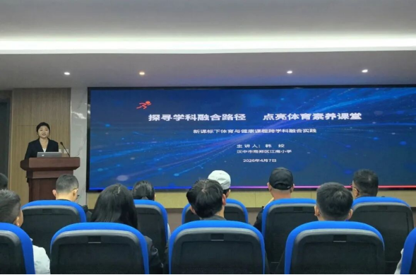 随后,江南小学体育教师韩姣带来了题为《探寻学科融合路径点亮体育素养课堂》的专题讲座。讲座紧扣新课标理念,结合具体课例深入解读了体育学科融合的实施路径、方法策略与实践要点,引导教师打破学科壁垒,将德育、美育、智育元素融入体育课堂,为今后体育教学的创新实践提供了思路与参考。