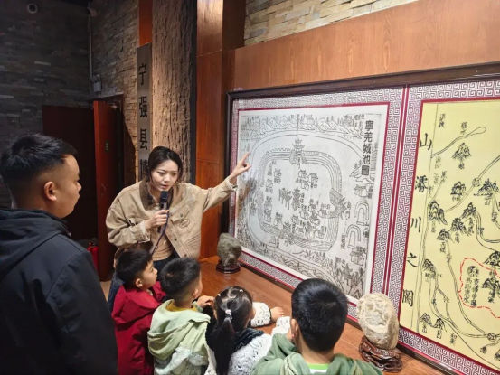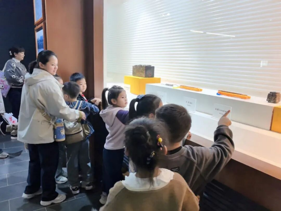 在解说员的引导下,孩子们依次走进羌源厅、文物厅等场馆,聆听羌族起源故事,观赏精美文物与羌绣作品,近距离触摸历史文化的深厚底蕴。
