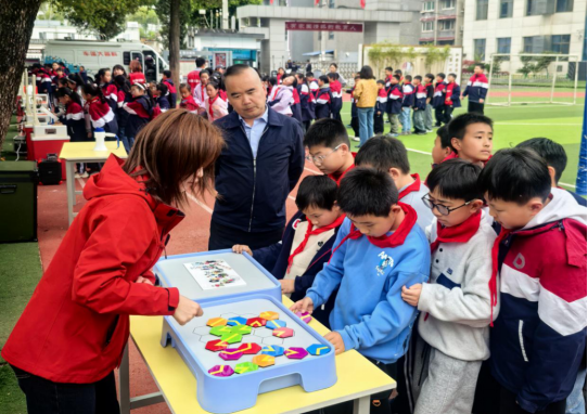 活动现场,科普大篷车化身“流动科学课堂”,搭载的互动展品涵盖光学、力学、人工智能等领域,将抽象科学原理转化为可操作的趣味体验。孩子们踊跃参与,在动手实践中探索奥秘、学习知识,让枯燥的科学概念变得鲜活。活动还结合不同学段特点分层设计内容,助力儿童萌发科学好奇,激发中小学生探索热情。